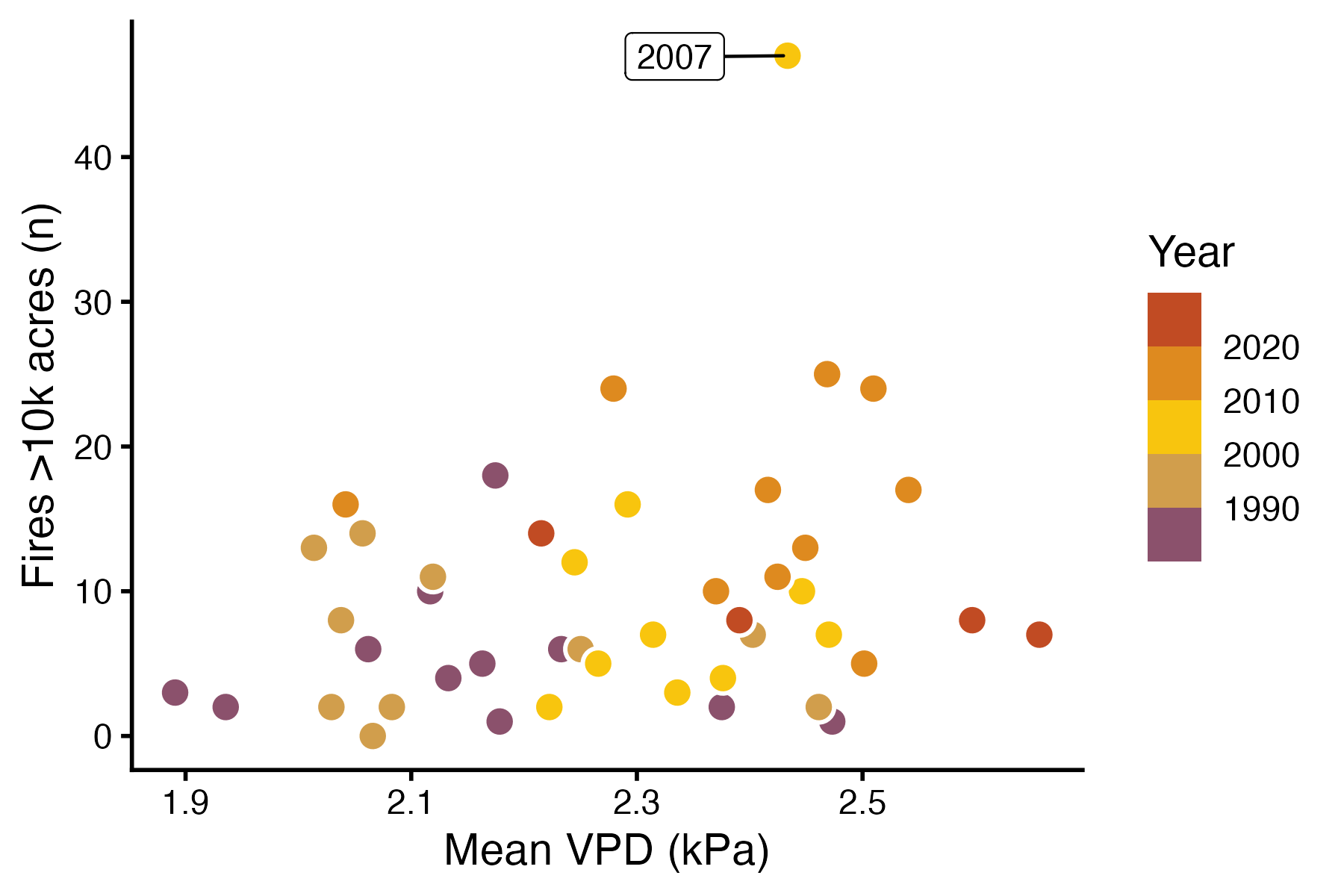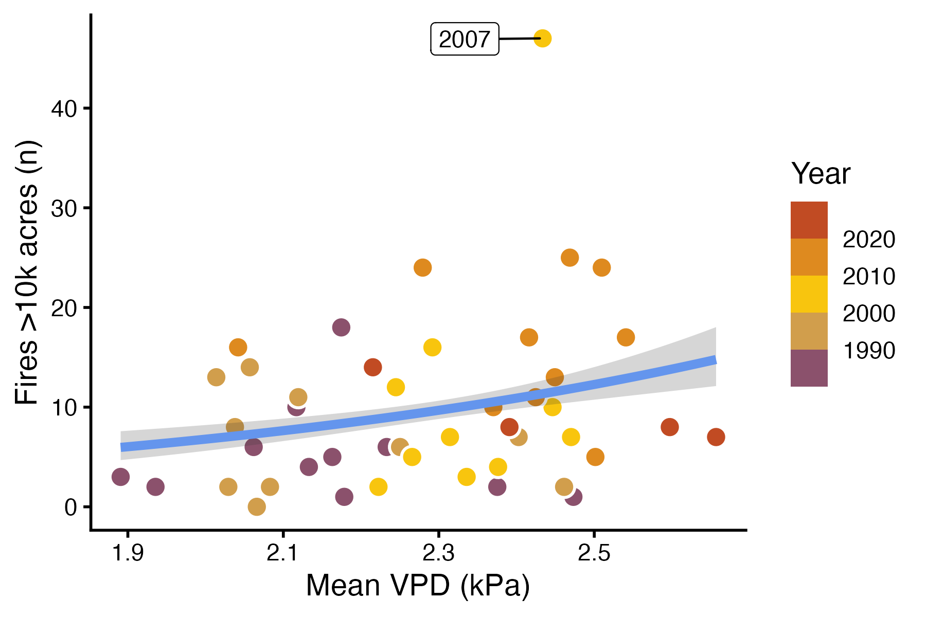 For more details about vapor pressure deficit and its relationship with fires, see Abatzoglou and Williams (2016) and Seager et al. (2015).